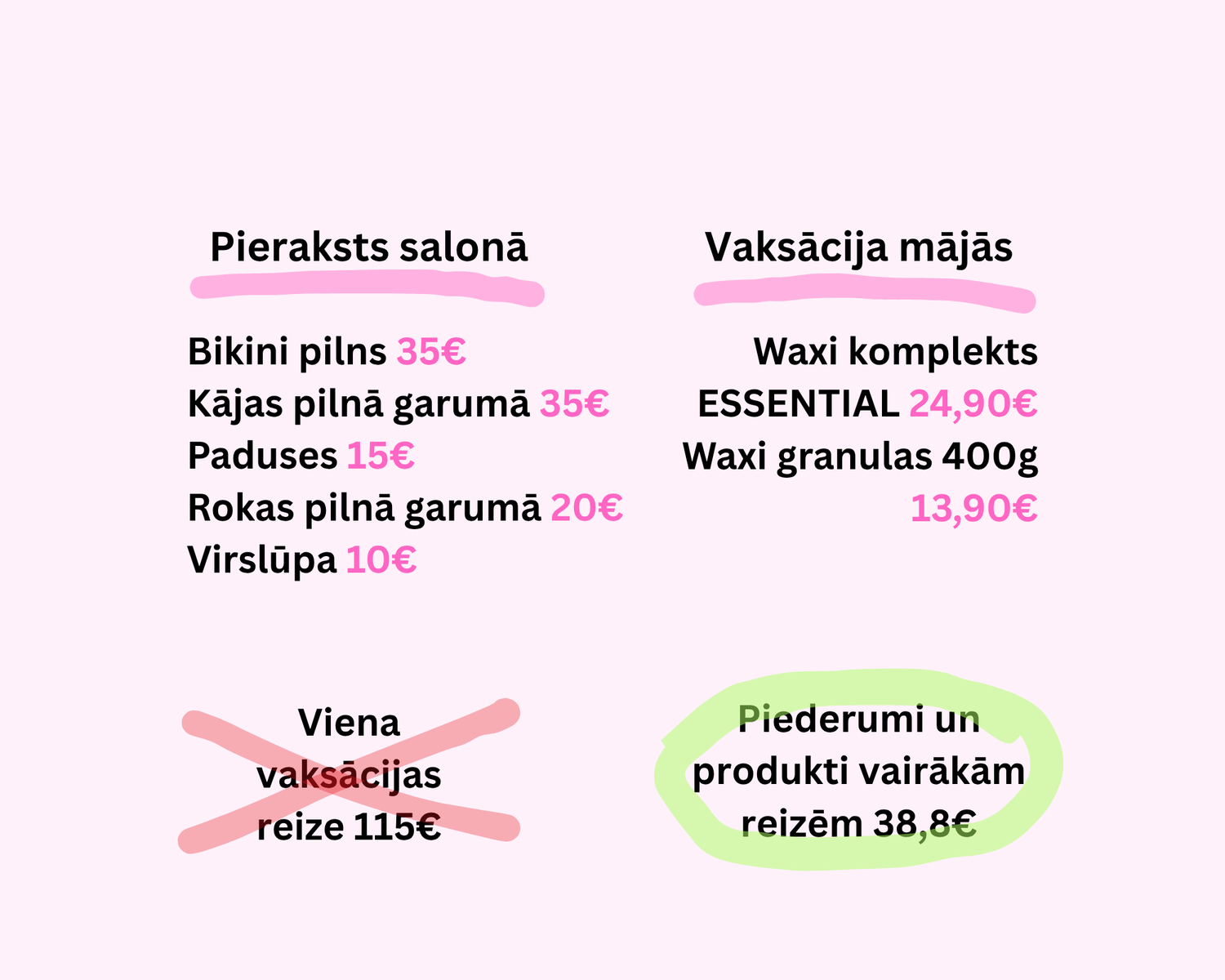 Vaksācija mājās sniedz ilgstoši gludu ādu un ir daudz efektīvāka par skūšanos, jo matiņi tiek izrauti ar sakni un ataug lēnāk, kļūstot mīkstāki un retāki. Atšķirībā no skuvekļa, kas nereti izraisa kairinājumu un ieaugušus matiņus, pareizi veikta vaksācija nodrošina gludu ādu līdz pat četrām nedēļām. Turklāt, izmantojot kvalitatīvos Waxi vaksācijas komplektus, procedūra ir droša, vienkārša un piemērota visām zonām – kājām, bikini, padusēm un rokām – ļaujot baudīt salona cienīgus rezultātus mājās.